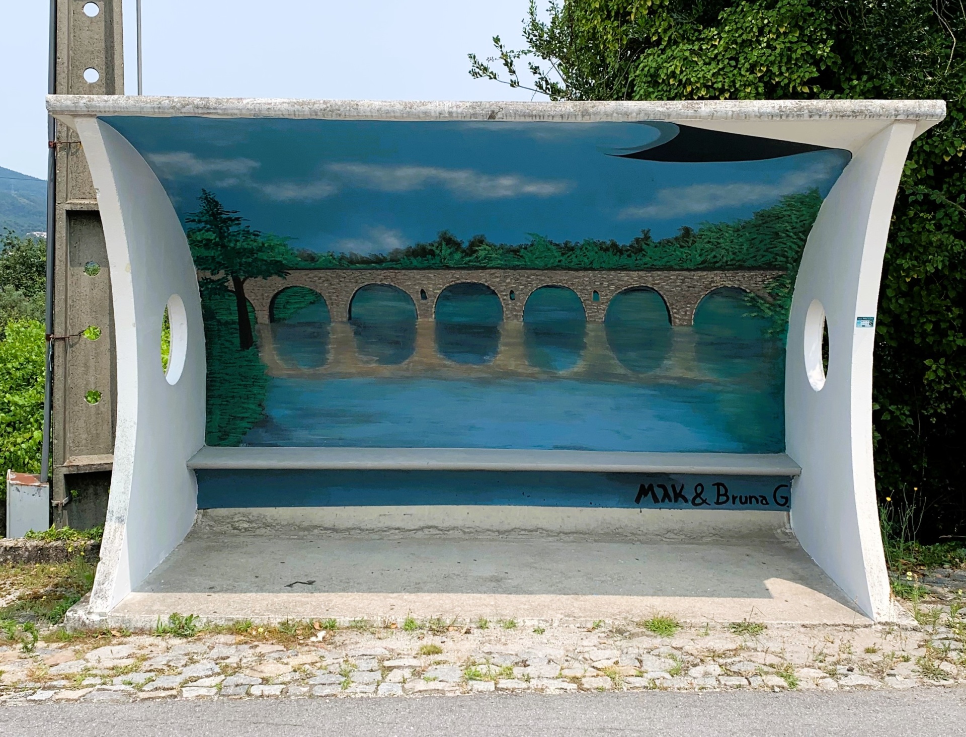 6 Paragens (Braga) Preço sob consulta Desconto de %. Partilhar Comprar Contactar Graffitis em 6 abrigos de paragem de autocarro, realizado para a Junta de Freguesia de Crespos e Pousada (Braga), em 2023.
